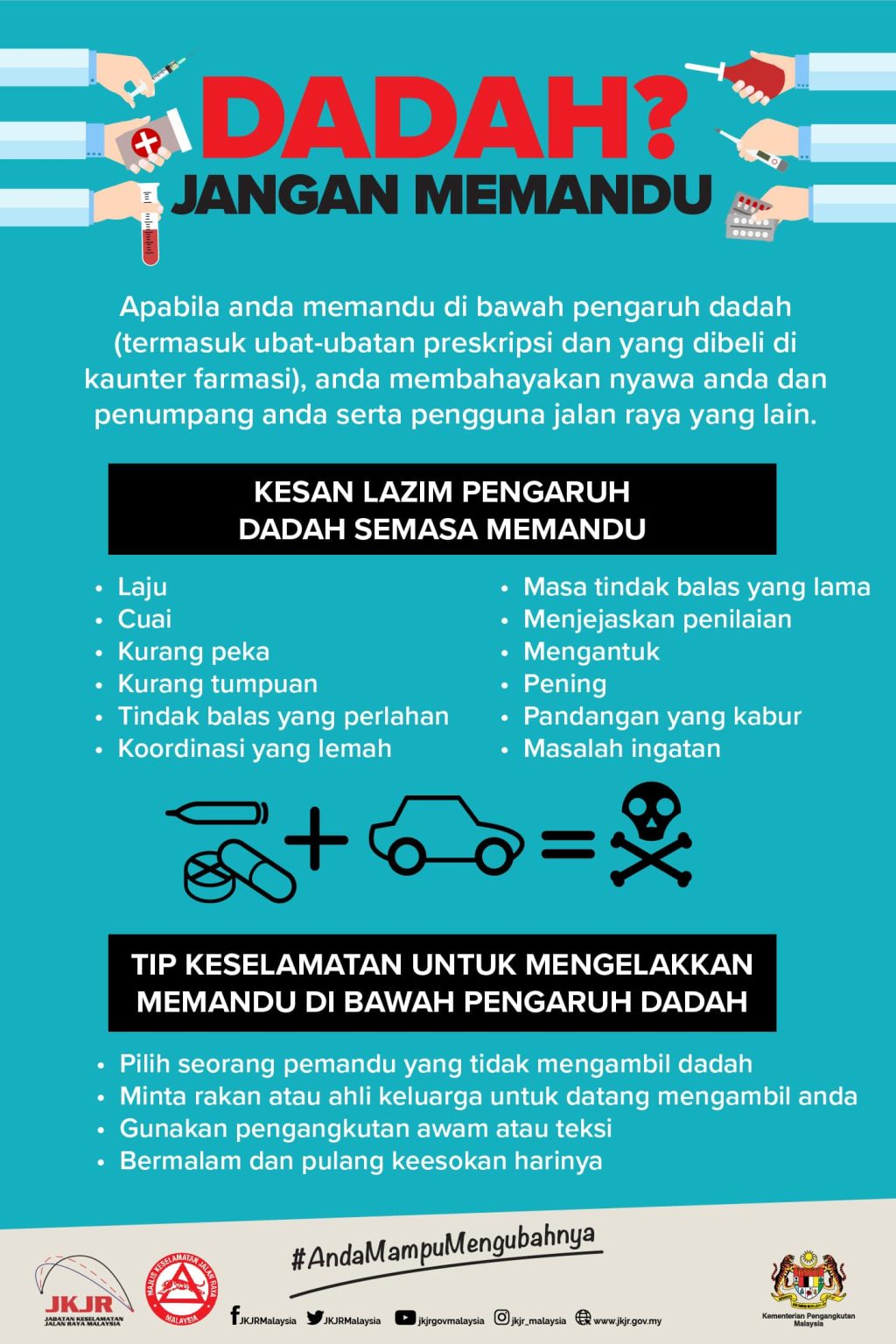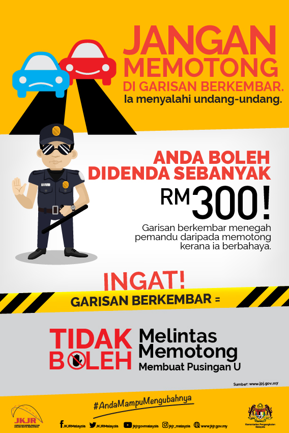 PSAs & Campaign Materials car kit poster malay-100-min Dadah? Jangan Memandu Do not drive under the influence of drugs. And, do not let others who are under its influence to drive, either. Double_lines_Poster_malay alcohol_poster_malay-100-min[1] blind spot poster malay-100 7warning poster malay-100-min Crossing poster malay Cross road poster malay Driving home poster malay distractions poster malay-100-min drive carefully poster malay-100-min